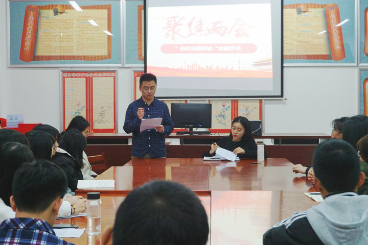 3月25日晚,我校习近平新时代中国特色社会主义思想读书社在连江校区自强楼114活动室开展“聚焦‘两会’时间,学习‘两会’精神”主题交流活动。校党委副书记吴访益与读书社师生30人参加了活动。