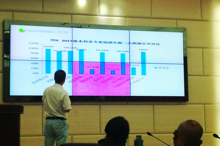 会上,黄斌校长对我校2018年招生工作提了三点要求。一是全员参与,突出特色,抓好招生宣传工作。招生工作是学校发展的重中之重。学校的每个人都要积极参与到招生宣传工作中来。在招生宣传中,要注意凝练学校特色和专业特色,针对目标区域、目标学校、目标生源有的放矢,加大宣传力度,切实提高招生宣传效果,吸引更多优质生源。二是及时完善相关招生政策的配套建设,将招生工作各项指标纳入绩效考核环节,提高新生录取率和报到率。三是各有关部门、各系(学院)要紧密衔接、加强联动、形成合力,抓早抓实,力争2018年秋季招生工作再上新台阶。