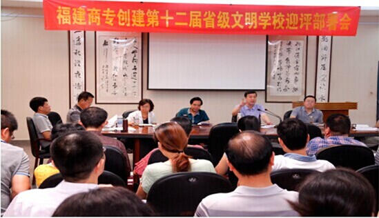 8月25日上午,我校再次召开创建第十二届省级文明学校迎评部署会。校党委书记林彬,校长袁新文,副校长吴贵明,校党委副书记黄跃舟,校党委副书记、纪委书记陈武,副校长杨忠祥,副校长胡新平,各系、各部门负责人以及永安物业商专管理处负责人等40余人出席了会议。会议由黄跃舟副书记主持。